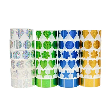 Factory Custom Labels Holographic Scratch Off Stickers Roll Heart Star Flower Laser Self Peel Stickers Scratch Card Label